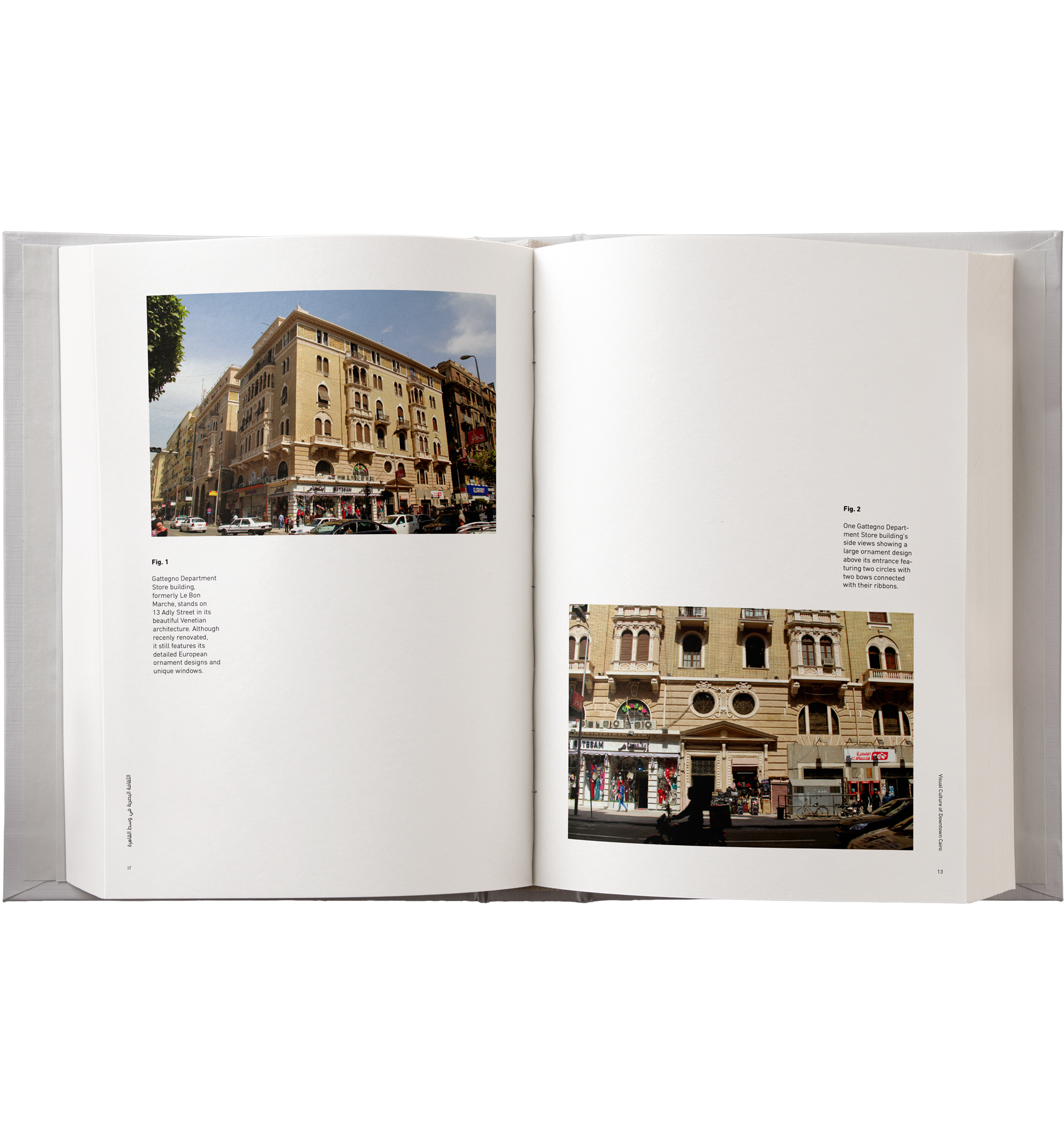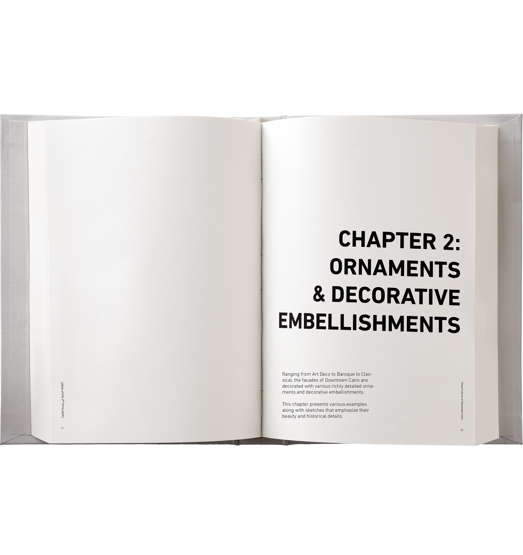 Graphic Design Thesis Project, The American University in CairoVisual Culture of Downtown Cairo is a study and a documentation of Wust El-Balad’s (Cairo’s Downtown Area) visual culture that consists of a series of complex visuals present in its urban and public space that form our identity and place us on the cultural map of the world. These visuals are collected into a book titled “Visual Downtown” and divided into seven chapters based on category consisting of building facades, ornaments and decorative embellishments, doors and windows, typography, street signs, manhole covers and a miscellaneous section documentedbased on serval fieldtrips to Wust El-Balad(Downtown).